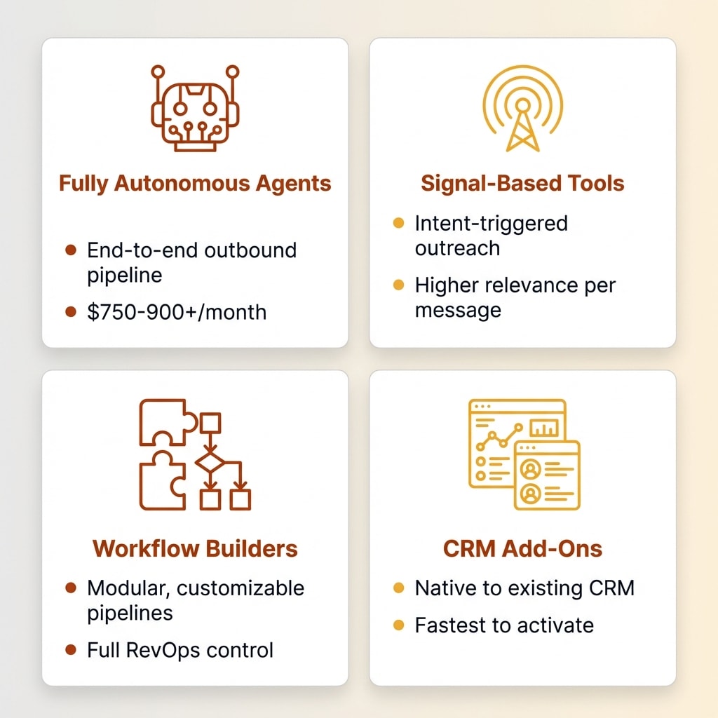 Not all AI SDR tools work the same way. Here's how the market actually breaks down: